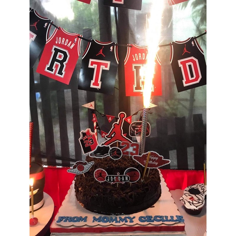 Jordan theme cake and cupcake toppers cake toppers 1 michael jordan half body 1 bull logo 1 small happy birthday 4 michael jordan logo jumping cupcake . Check out our jordan cake topper selection for the very best in unique or custom, handmade pieces from our craft supplies & tools shops.